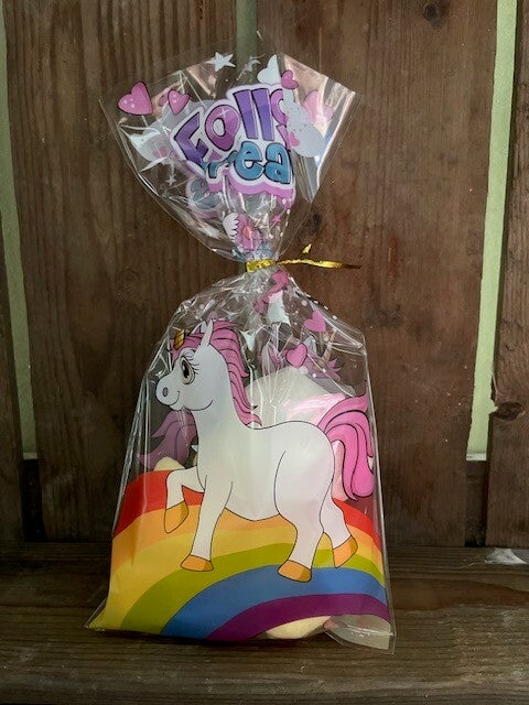 Zakje wordt gevuld met 2 snoepjes en 1 cadeautje.